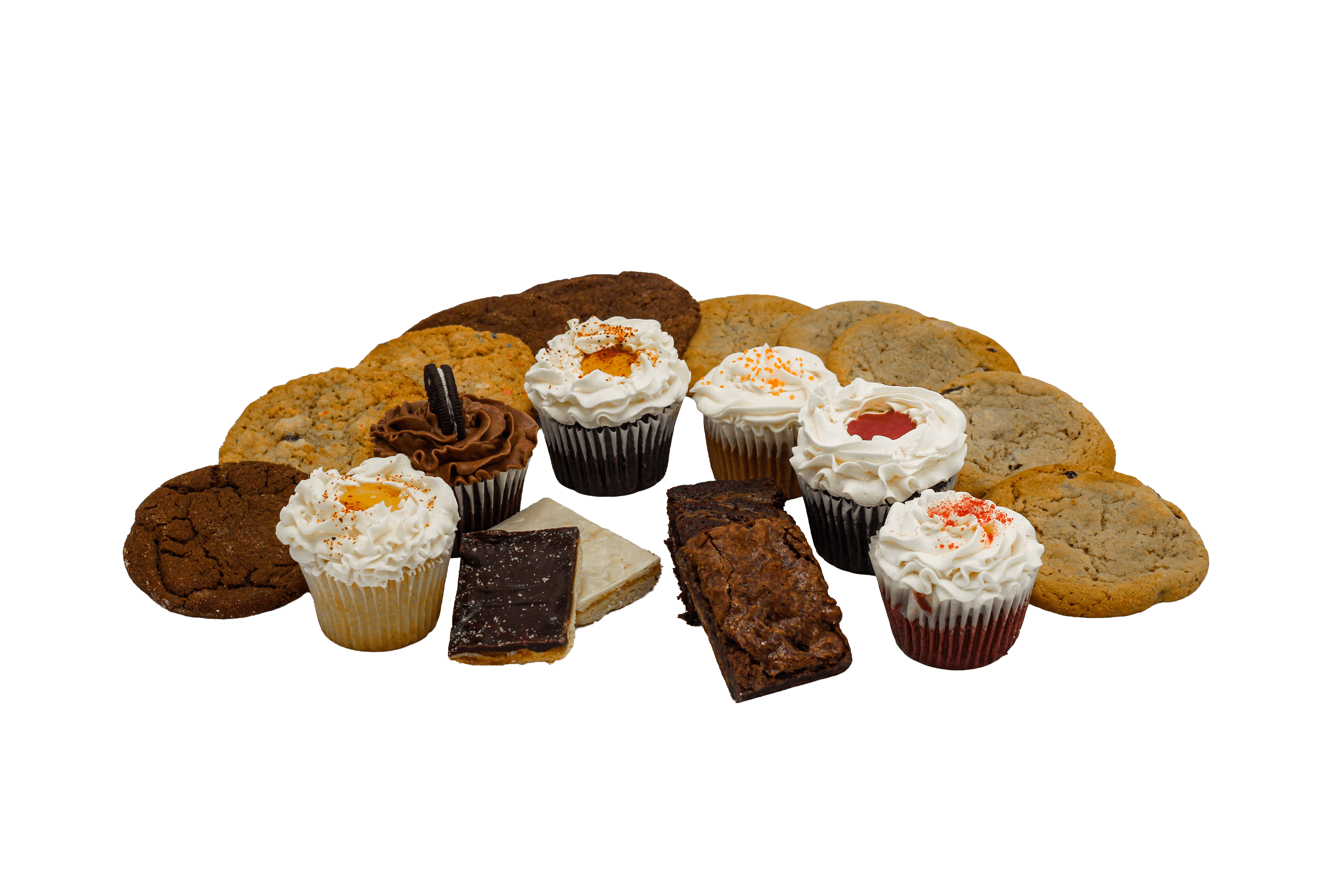 We specialize in dairy-free, vegan, and gluten-free treats, as well as regular desserts. You can order from us directly in our online shop or place a custom order for a cake for your next event through our website. We also offer catering and corporate orders, including custom logo cookies and designs.