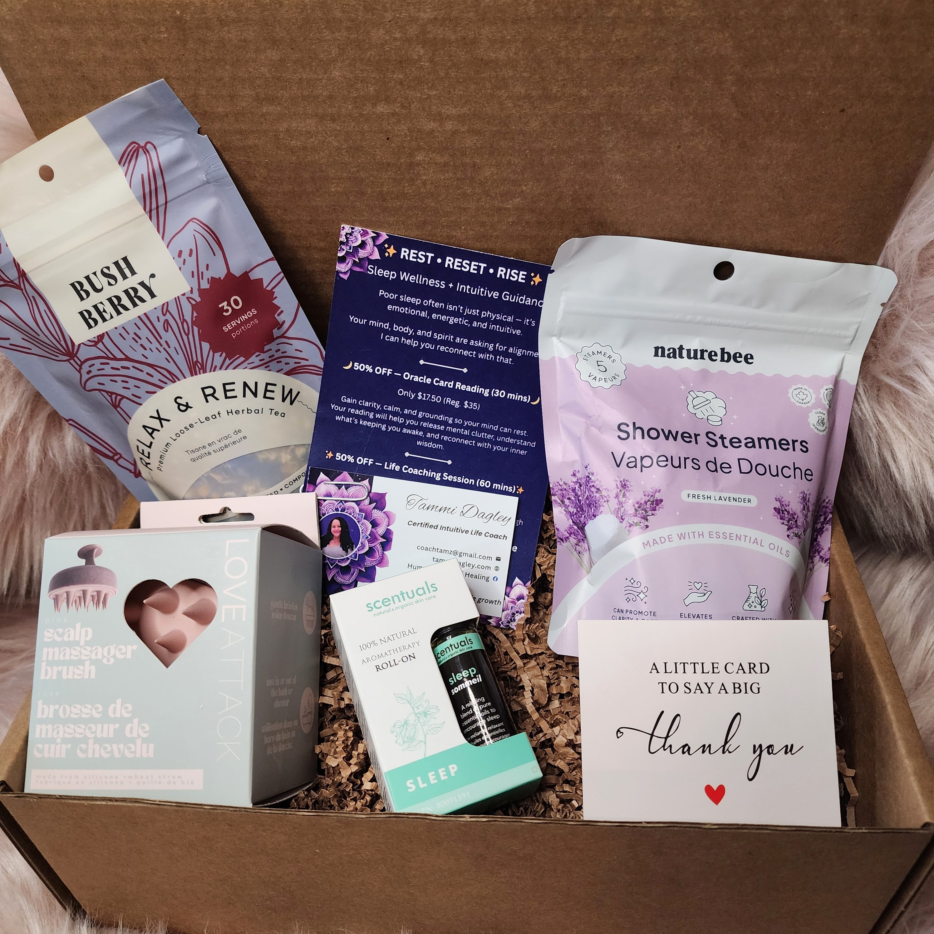 We offer seasonal, curated, and customizable wellness boxes filled with exclusively Canadian, natural products. Delivered to your door, each box provides a practical self-care solution for individuals, gifting, and corporate wellness. Our boxes are designed to reduce stress, prevent burnout, and support everyday balance.